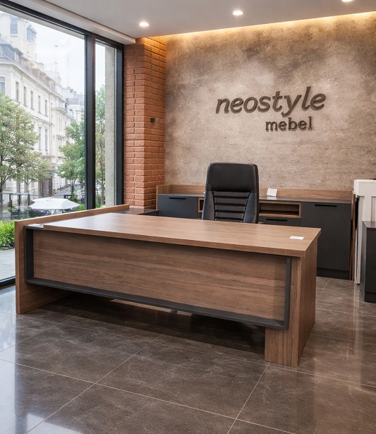 Ofis masası və kamod sifarişlə yığılır. Ölçüləri: ümumi 210*170, masanin üstü 180*80sm. Oturacaq qiymətə daxil deyil. Bəzi hissələri qalinlaşma ilə 3,6sm, bəzi hissələri isə standart 1,8sm qalınlıqda Rəngdə və ölçülərdə dəyişiklik etmək olar