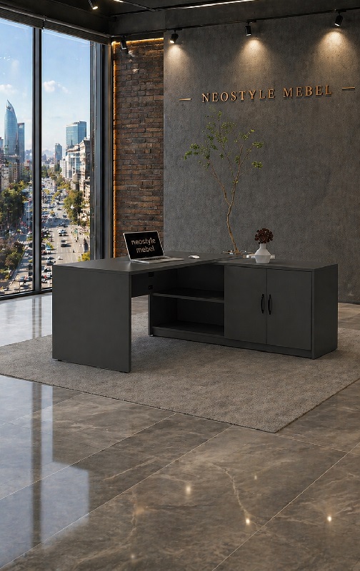 EKONOM Ofis masası. Sifarişlə yığılır. Ölçüləri: ümumi 160*140sm, hündürlük 76sm, yan hissə 140*40sm,
