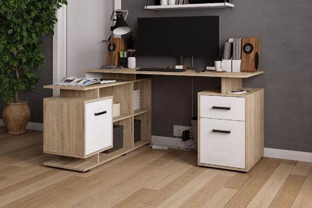 Ev və ya ofis üçün çalışma masası sifarişlə yığılır. Personal və işçi masası. Rəngdə və ölçüdə dəyişiklik etməklə sifariş vermək olar. Ümumi ölçüsü 150 х 110 sm, masa 150*60 hündürlük 75sm. yan köməkçi hissə 110*40sm.