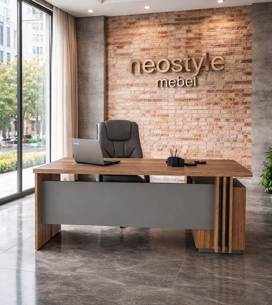 Ofis masası sifarişlə yığılır. Ölçüləri 160*140sm, masanın üstü 180*65sm, yan köməkçi hissə 140*40sm. kreslo qiymətə daxil deyil.