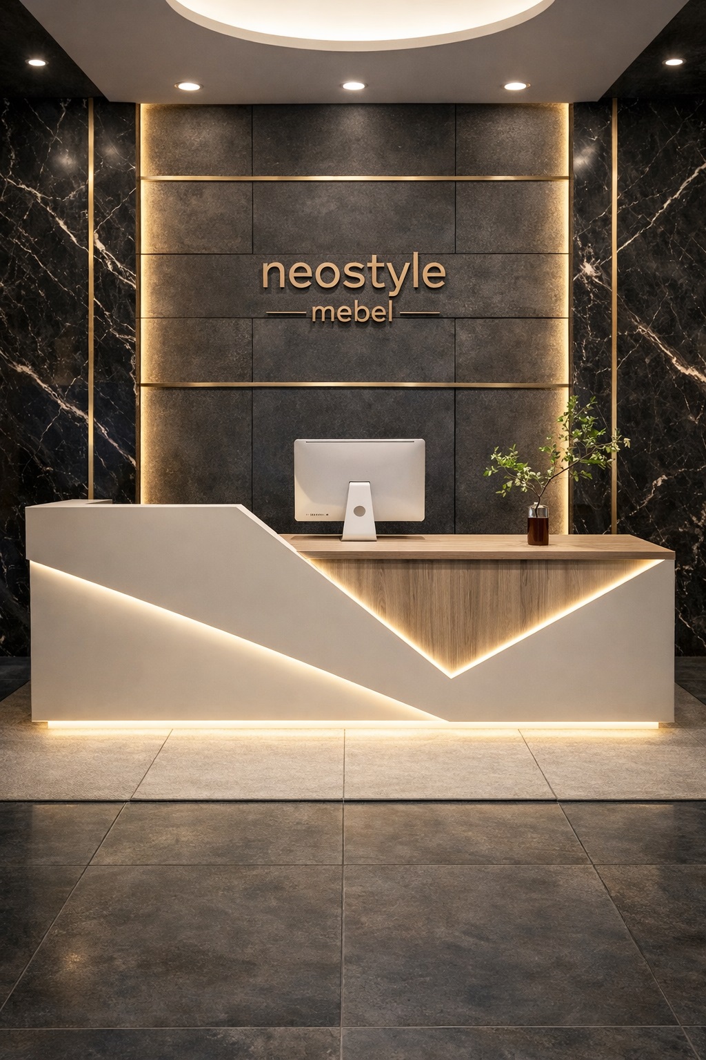 Reception masası. Sifarişlə yığılır. Ölçüsü 240*66sm. İçərisində 1 siyirmə və 1 şkaf Rəngdə və ölçüdə dəyişiklik etmək olar.