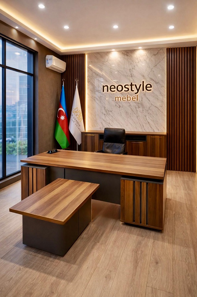Rəhbər masasi, komod və jurnal masası. Ölçüləri 220*150sm masanin üstü 220*80sm yan köməkçi hissə 150*50sm. oturacaq qiymətə daxil deyil. Sifarişlə hazırlanır. Rəngdə və ölçülərdə dəyişiklik etmək olar.