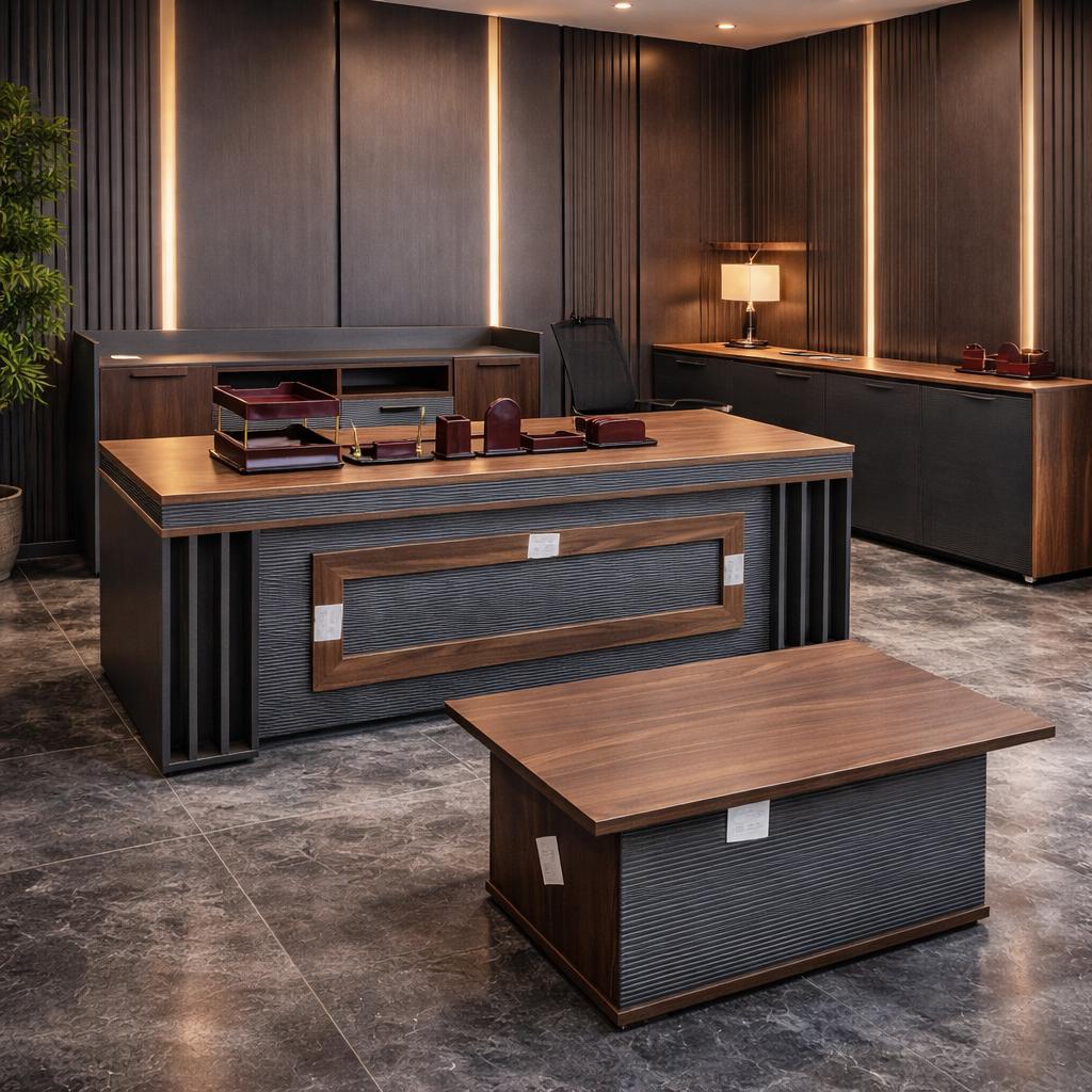 Ofis mebel dəsti. Sifaişlə hazırlanır masanın ölçüsü 2000mm*800mm, yan köməkçi dolab 850mm*500mm, arxa komod 1740mm*400mm, jurnal masası 850mm*500mm rəngdə və ölçüdə dəyişiklik etmək olar. masaüstü aksesuarlar qiymətə daxil deyil.