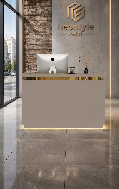 Reception masası. Sifarişlə yığılır. led işıqla. içində 1 siyirmə və 1 şkafla eni 140sm, dərinlik 55sm, hündürlük 110sm -440AZN. Digər ölçü qiymətləri : eni 100sm, dərinlik 45sm, hündürlük 110sm -340AZN eni 120sm, dərinlik 50sm, hündürlük 110sm -390AZN eni 160sm, dərinlik 60sm, hündürlük 110sm -490AZN eni 180sm, dərinlik 60sm, hündürlük 110sm -540AZN eni 200sm, dərinlik 60sm, hündürlük 110sm -590AZN eni 240sm, dərinlik 60sm, hündürlük 110sm -690AZN. Rəngdə və ölçüdə dəyişiklik etmək olar.