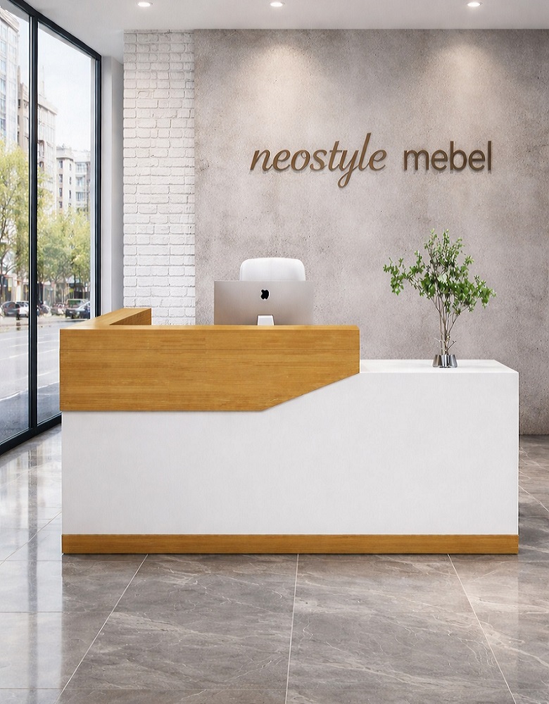 Reception masası sifarişlə yığılır. eni 200sm, dərinlik 60sm, hündürlük 100sm. içində 1 siyirmə və 1 şkaf Rəngdə və ölçüdə dəyişiklik etmək mümkündür.