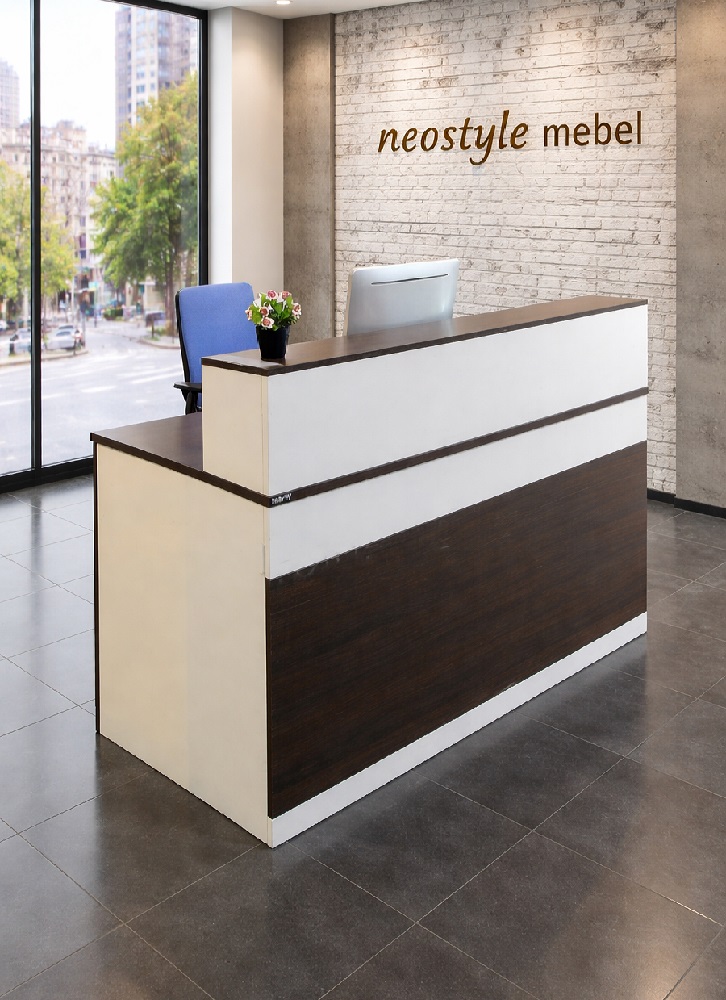 Reception masası sifarişlə yığılır. eni 180sm, dərinlik 60sm, hündürlük 110sm 420AZN. eni 200sm, dərinlik 60sm, hündürlük 110sm 460AZN. içində 1 siyirmə və 1 şkaf