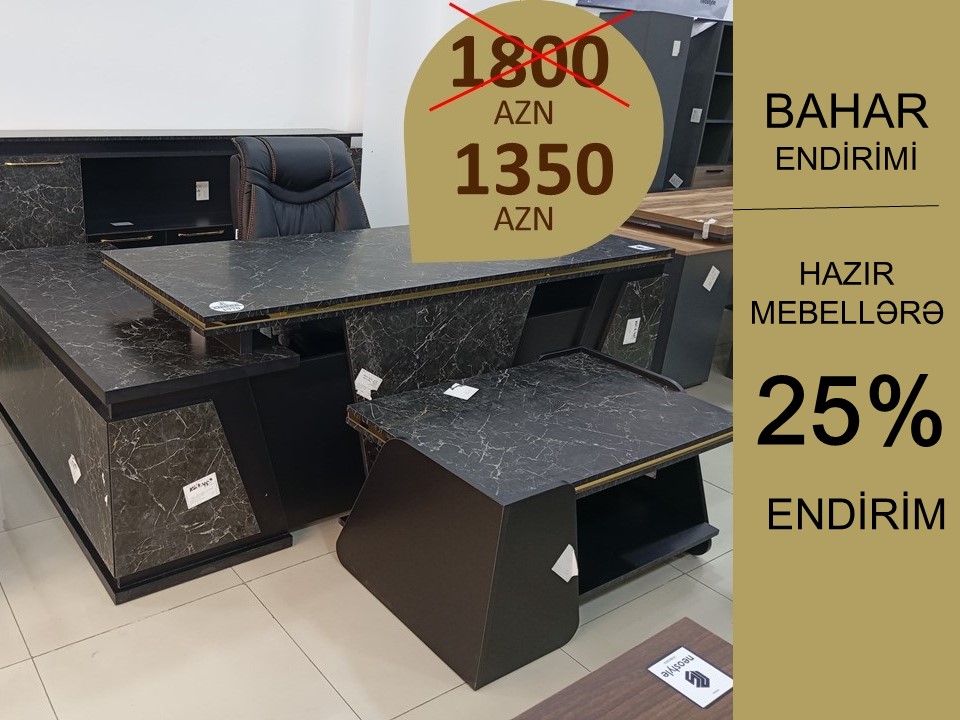 Hazır ofis mebellərinə 25% endirim. 1800AZN deyil 1350AZN. BAHAR KAMPANİYASINDAN yararlanın. Kampaniya qısa müddətdə keçərli olacaq. TƏLƏSİN! Ofis mebeli. Rəhbər masasi, jurnal masası və komod.