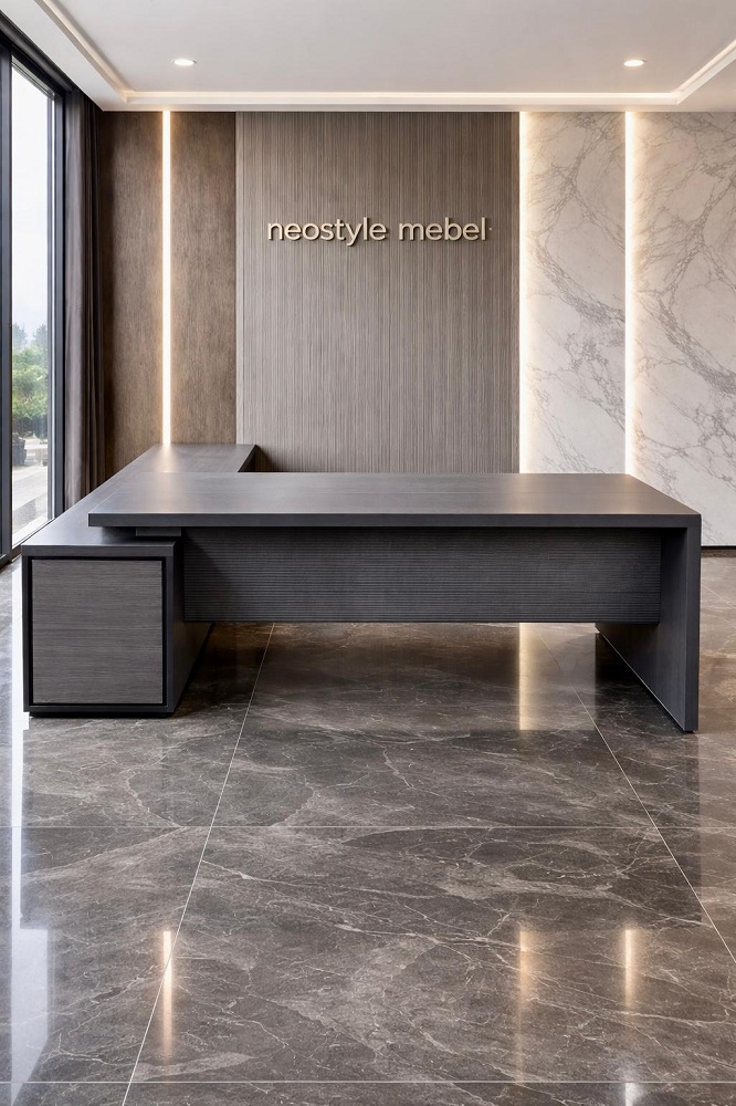 Ofis masası. Sifarişlə hazırlanır. Ölçüləri: umumi olcusu 210*155 sm, masanin üst hissesi 180*80 sm, yan komekci hissə 150*50 sm, Rəngdə və ölçülərdə dəyişiklik etmək olar. Jurnal masası 80AZN