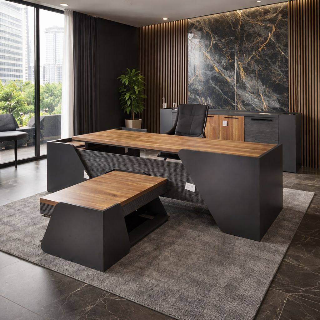 Ofis dəst mebeli. Sifarişlə Türkiyə istehsalı materialdan yığılır. Ölçüləri 252*164sm masanin üstü 210*80sm yan köməkçi hissə 164*52sm Rəngdə və ölçülərdə dəyişiklik etmək olar. Oturacaq qiymətə daxil deyil. Şəhər daxili 1-ci mərtəbəyə çatdırılma pulsuz. Şəhər ətrafı qəsəbələrə əlavə ödənişlə.